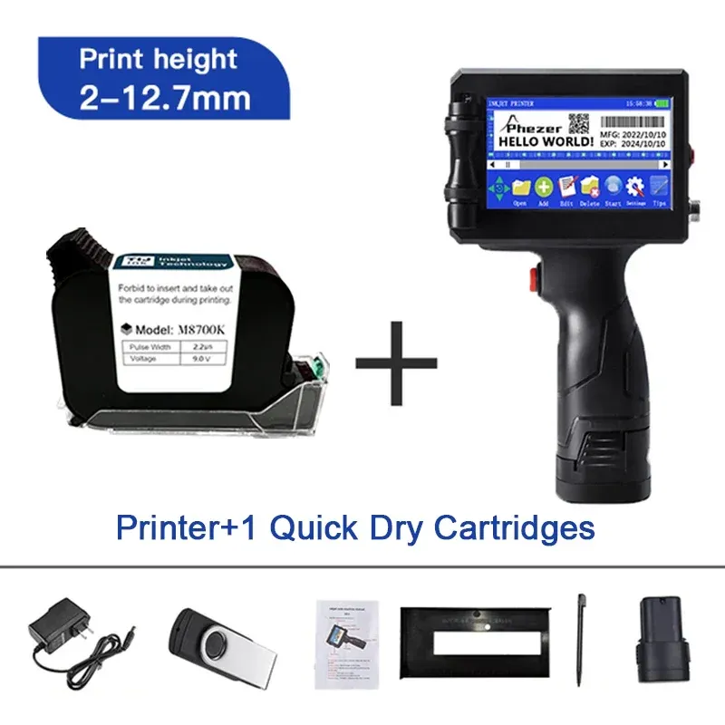 Phezer 12.7/25.4mm Label Printer Handheld Inkjet Printer QR Bar Batch Code Date Number Logo Expiry Date Coding Machine Portable