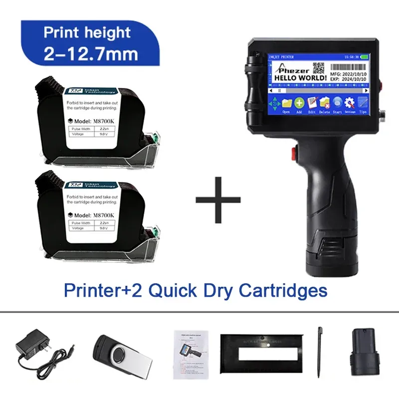 Phezer 12.7/25.4mm Label Printer Handheld Inkjet Printer QR Bar Batch Code Date Number Logo Expiry Date Coding Machine Portable