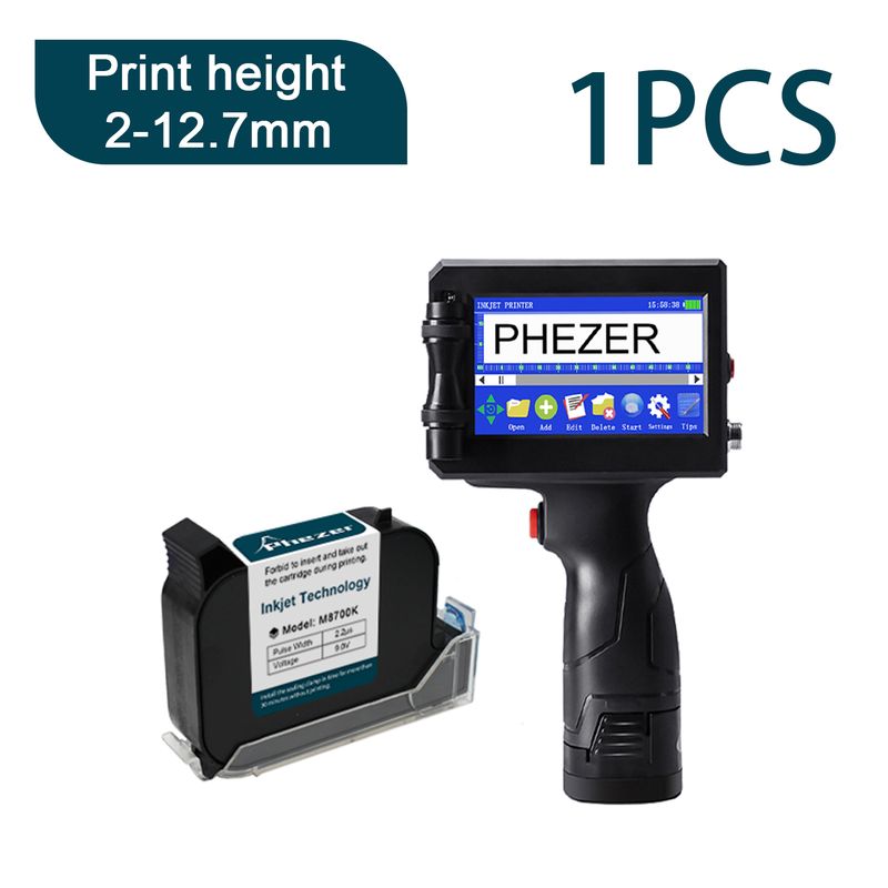 Phezer P15 12.7mm/25.4mm 28 Languages Label Printer QR Bar Batch Code Date Number Logo Expiry Date Handheld Inkjet Printer