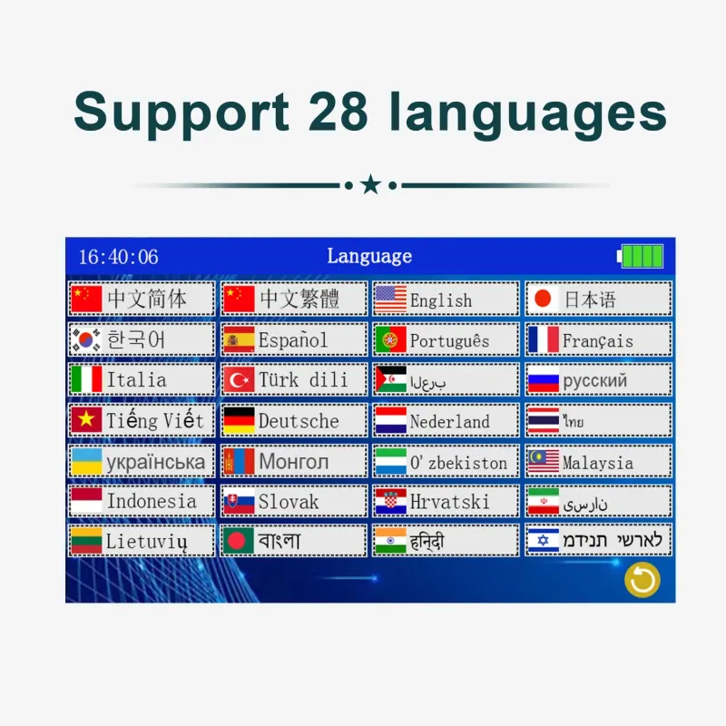 3: This machine supports 28 languages, and you can use U disk to import new fonts.
