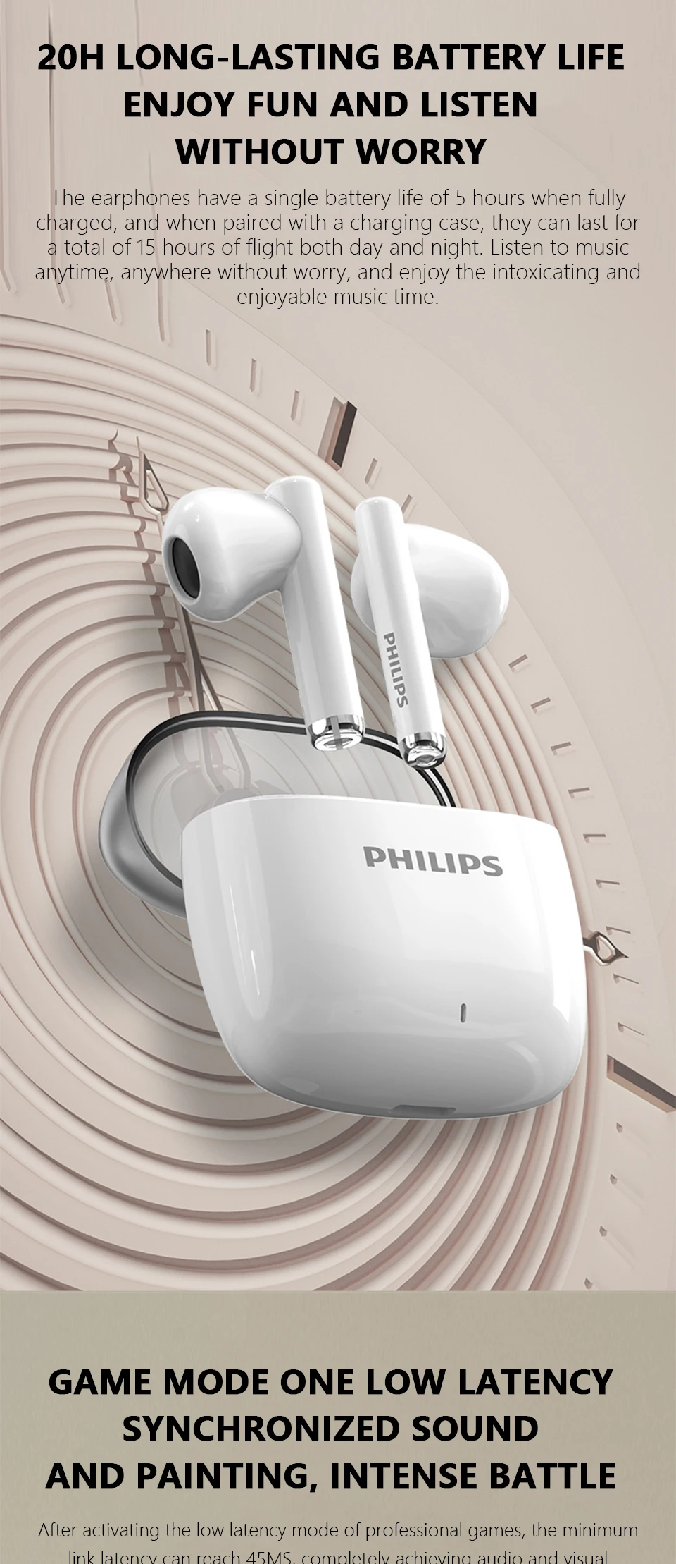 PHILIPS TAT2420 MINI Semi-in-ear Wireless Bluetooth Headphones Offer HIFI Sound Quality And Intelligent Call Noise Reduction
