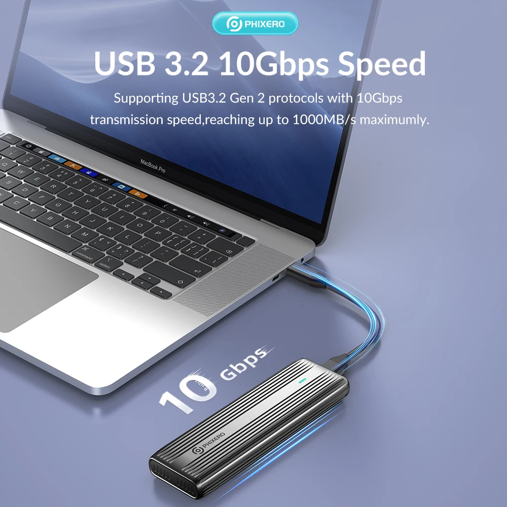 Supporting USB3.2 Gen 2 protocols with 10Gbps transmission speed.
