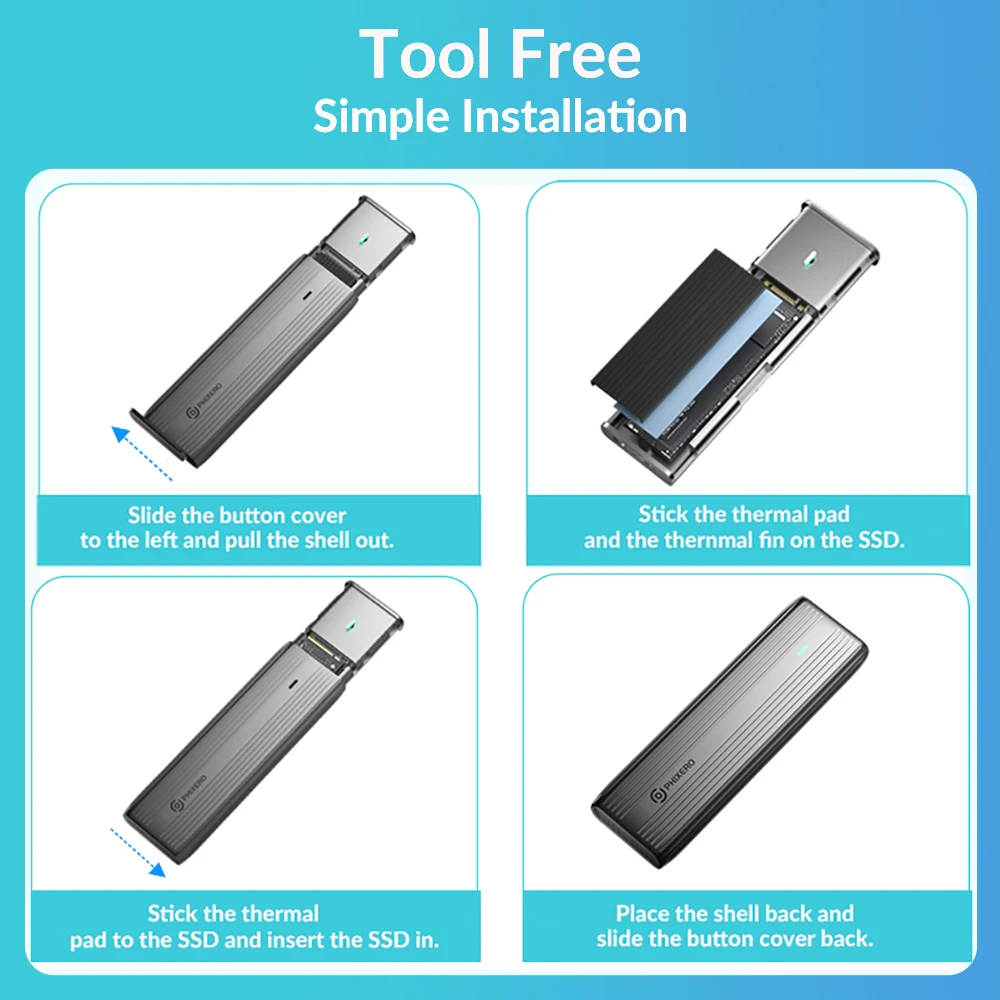 Tool-Free NGFF NVMe SSD Enclosure