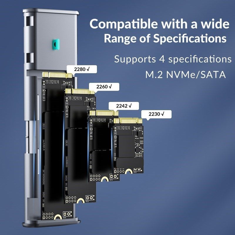Supports 4 specifications M.2 NVMe/SATA:2280.2260.2242.2230
