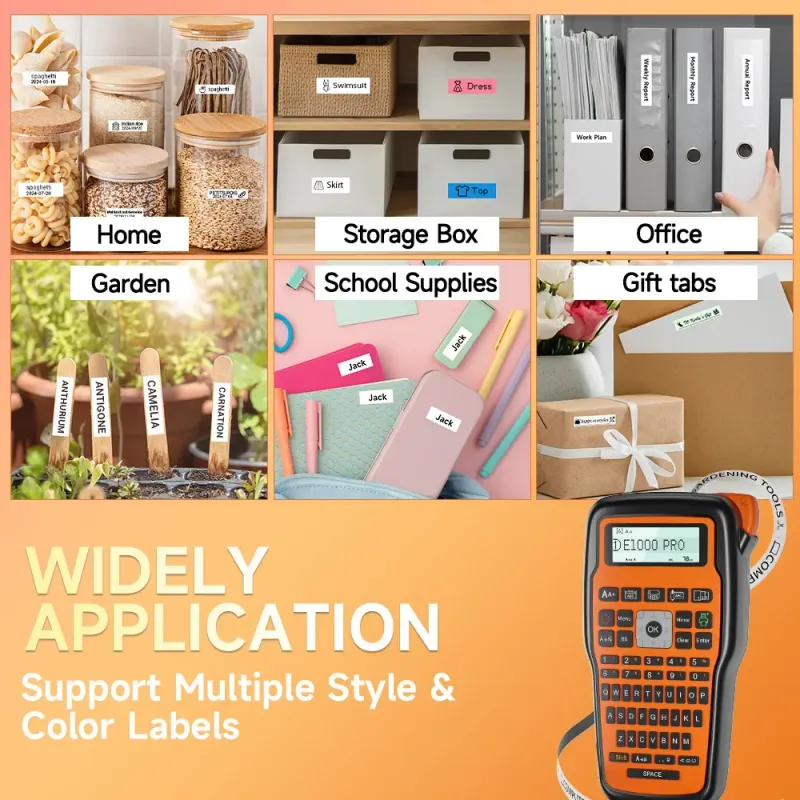1, E1000 label maker printer can be used to label and organize construction site, electricity, factory, telecommunication, lab, postbox, fixed assets and others, including electricians, technicians, mechanics, outdoor operators, etc.
