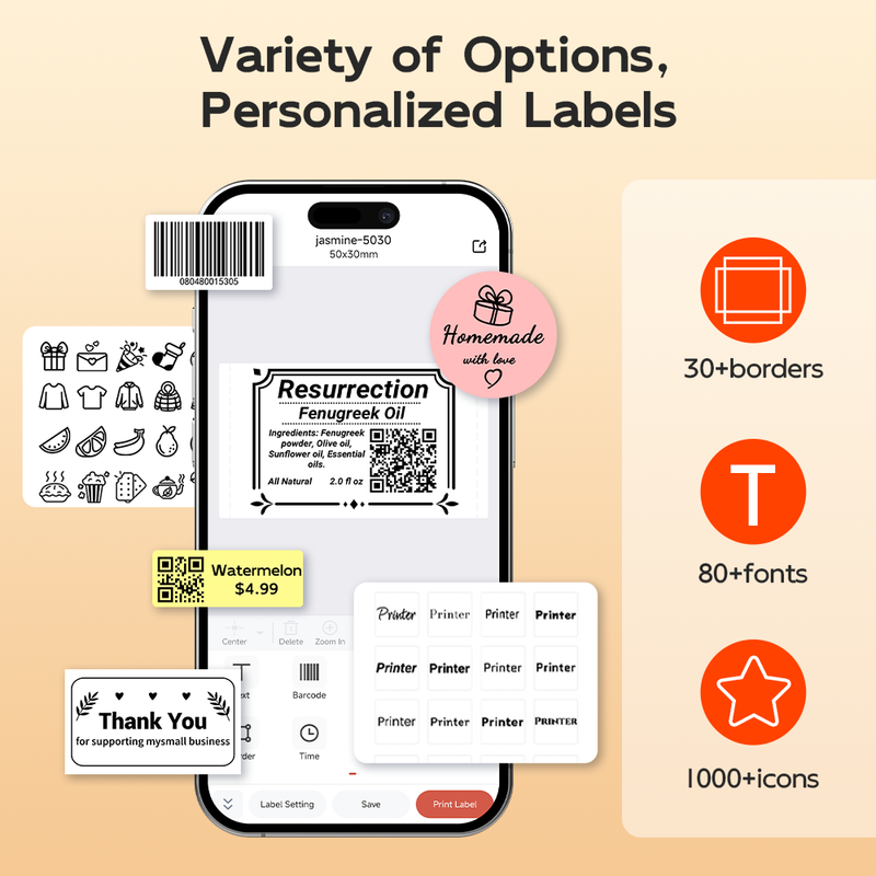 App-Enabled Label Maker with Bluetooth Connectivity- M108 label maker offers Bluetooth connectivity and is paired with "Print master" app. You can use 300+ Templates and 1000+ Icons. It enables the creation of professional barcode labels as well as personalized labels. The customization options provided ensure labels can be designed to meet specific needs