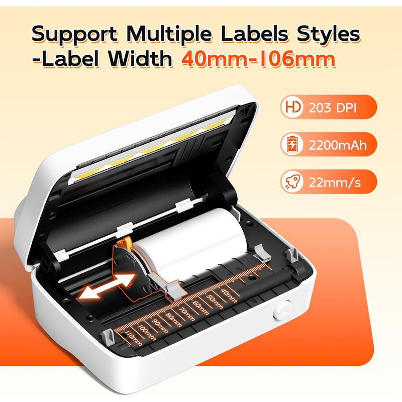 Ink-free 203dpi printing. Handles 1.57"-4.1" (40-106mm) roll/fanfold labels. Combines compact label maker + 4x6 shipping printer.