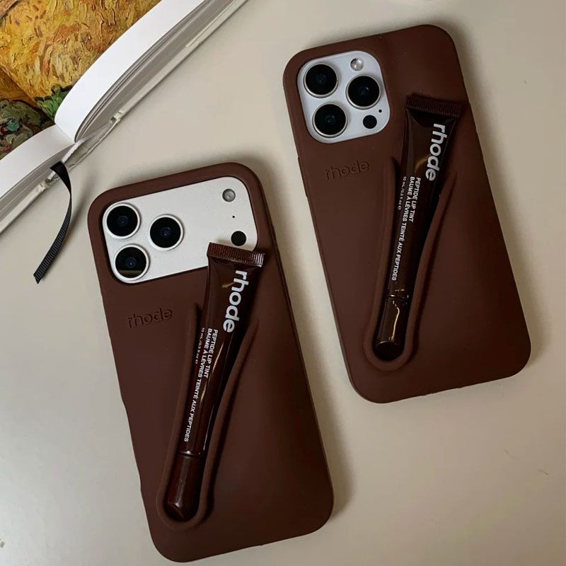 Phone Case with Box and Lipstick for IPhone 15 16 14 13 12 11 Pro Max Plus 17 Air Lip Gloss Portable Soft Silicone Shockproof