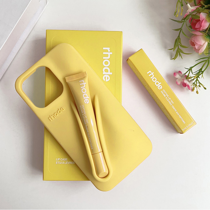 Phone Case with Box and Lipstick for IPhone 15 16 14 13 12 11 Pro Max Plus 17 Air Lip Gloss Portable Soft Silicone Shockproof