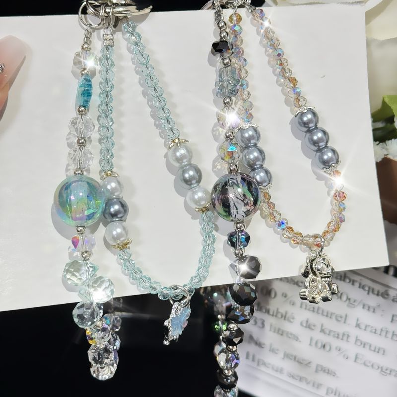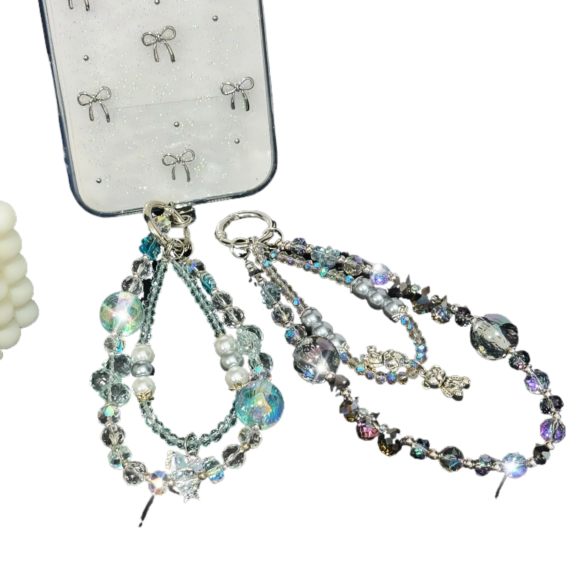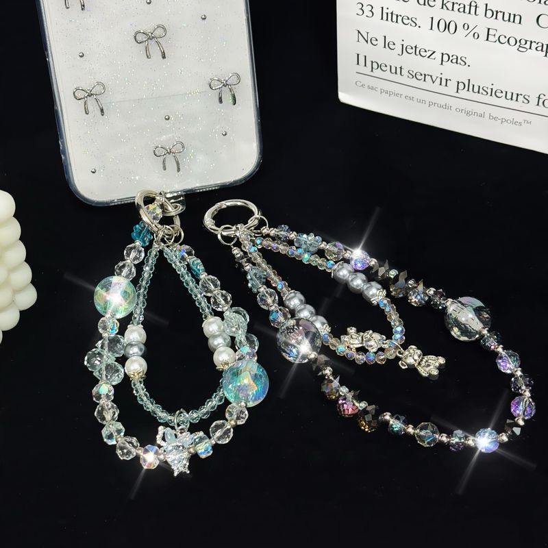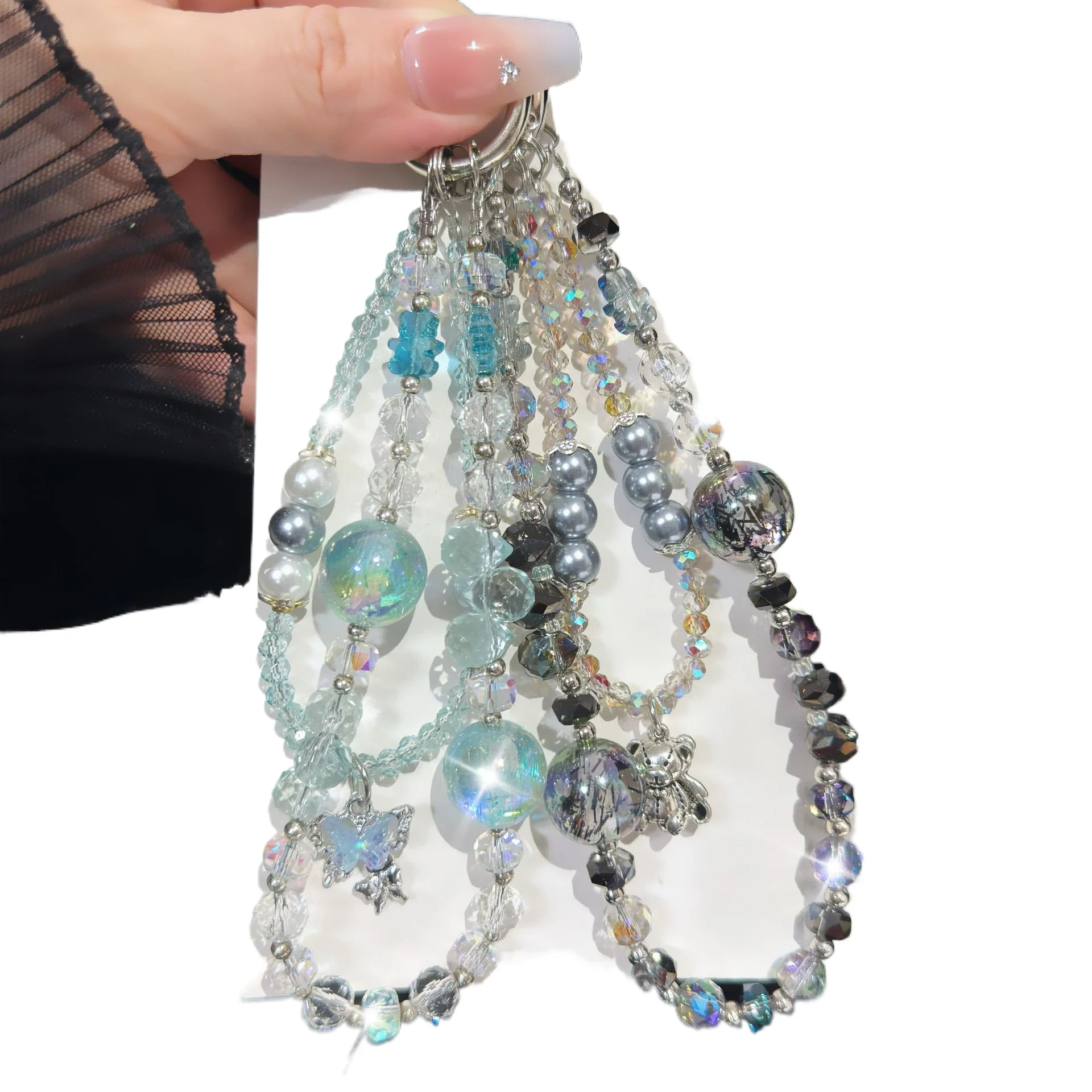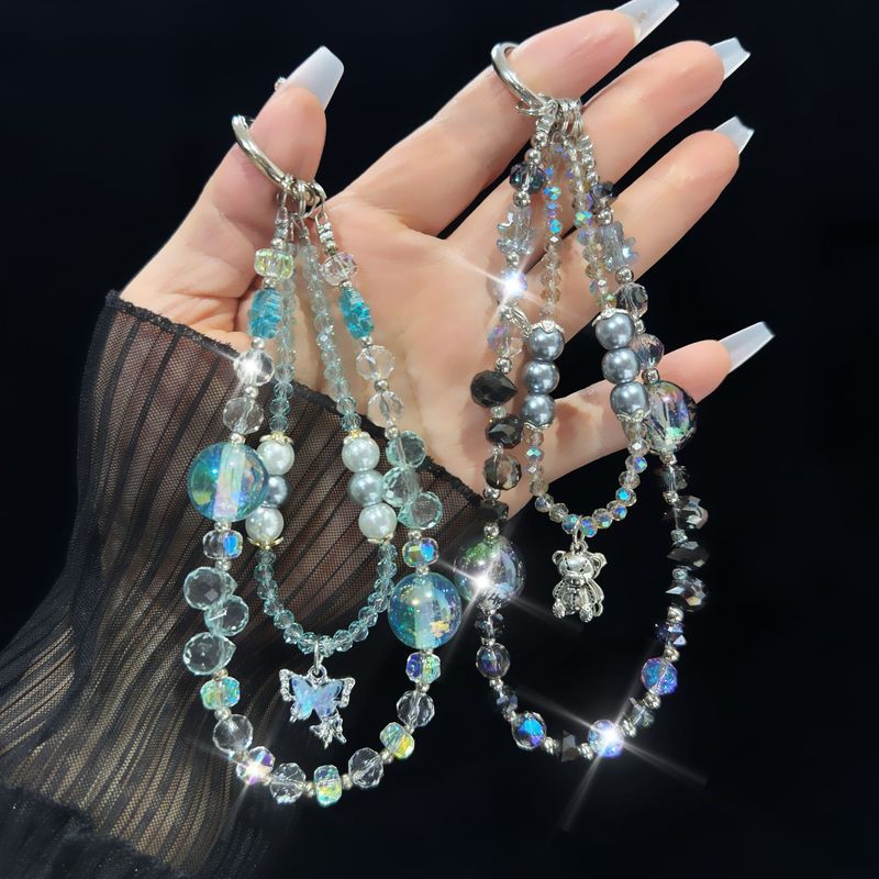 Phone Lanyard Short Bear Butterfly Pendant Dazzling Crystal Beaded Bracelet High End Outdoor Travel Portable Pendant