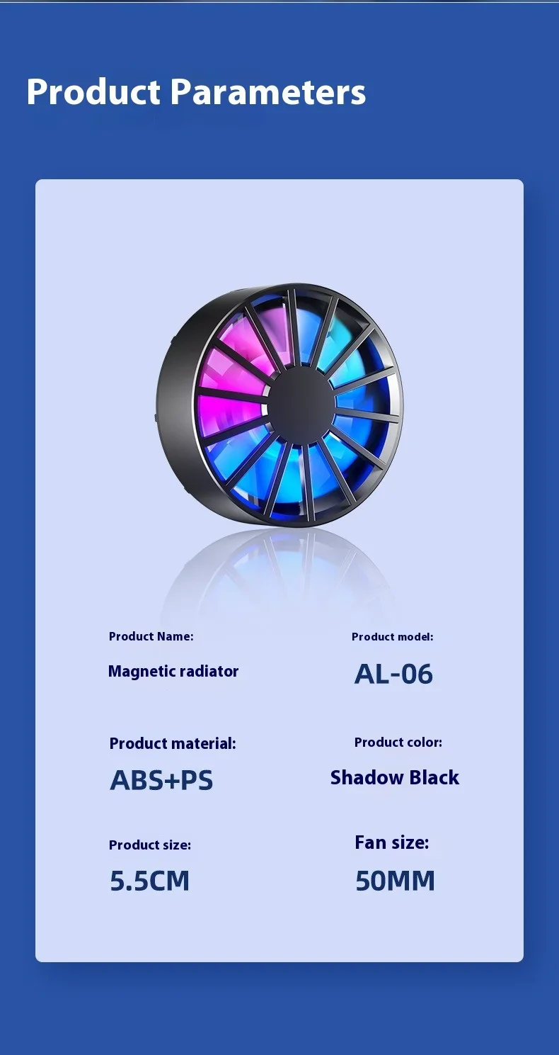 Phone Radiator Portable Magnetic Phone Cooler Low Noise Light Weight Fan with RGB Light Fast Cooling for Phone Tablet PUGB Game