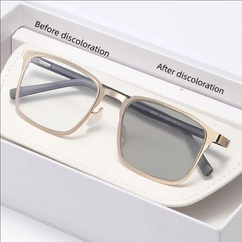 Photochromic Myopia Glasses Business Full-frame Fashion Ultra-light Men's Square Tr90 Temple Myopia Glasses 8405