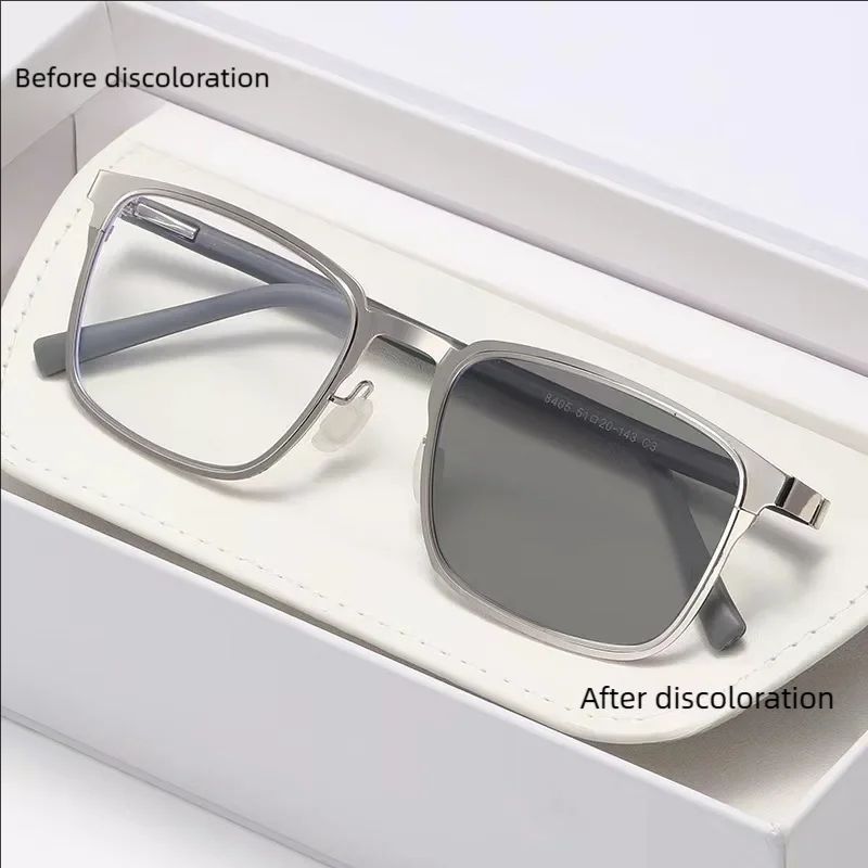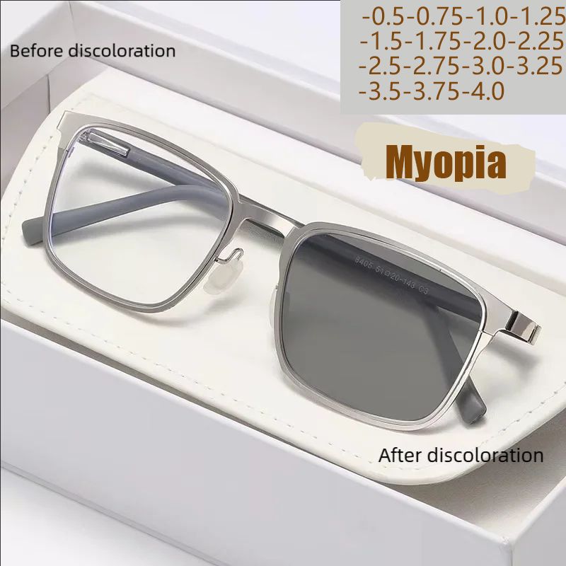 Photochromic Myopia Glasses Business Full-frame Fashion Ultra-light Men's Square Tr90 Temple Myopia Glasses 8405