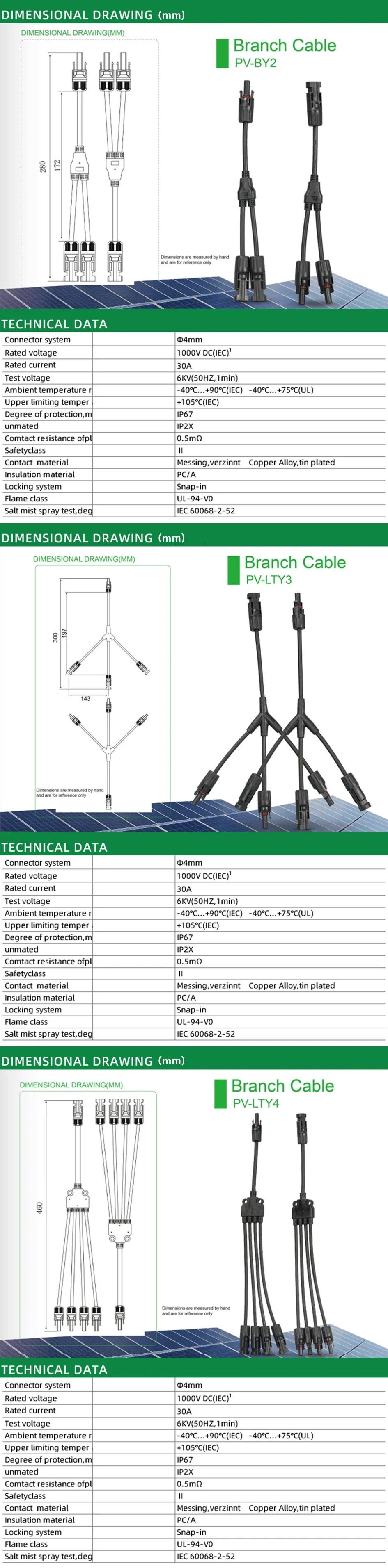Photovoltaic Solar PV Connector Y/T Type 30A 1000V 3 4 5 6 7 Way Branch Connector Kit For PV/MC Cable 2.5/4/6mm² Battery Module