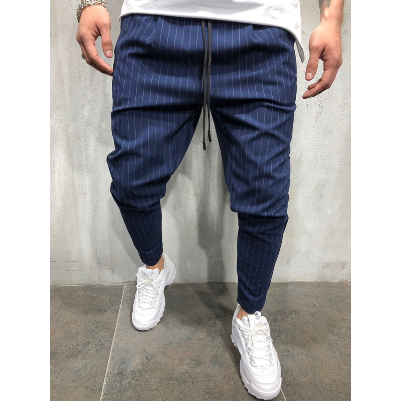Piece Of Hip Hop Casual Fashion Small Feet Tethered Men's Suit Trousers Blue 3XL