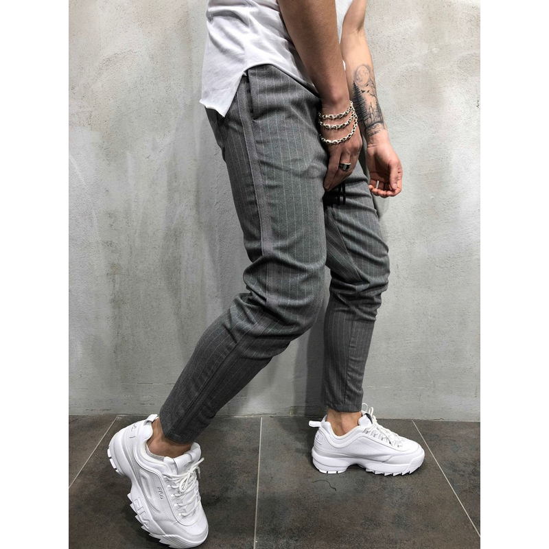 Piece Of Hip Hop Casual Fashion Small Feet Tethered Men's Suit Trousers Grey 2XL
