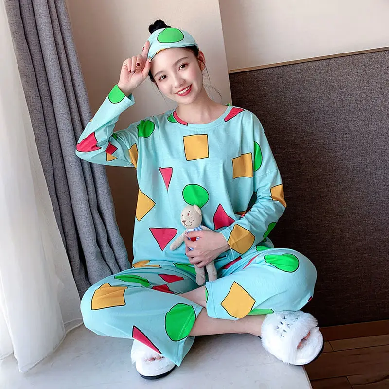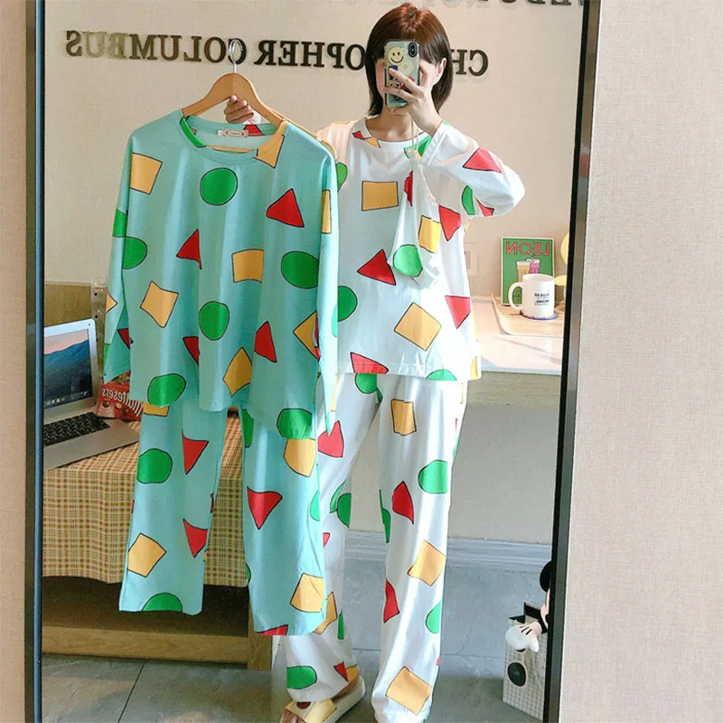 Pijama Sin Chan Man Pajama Sinchan Cotton Spring Long-sleeved Trousers Sets Japanese Pajamas for Couples Man and Woman Sleepwear