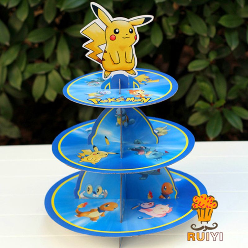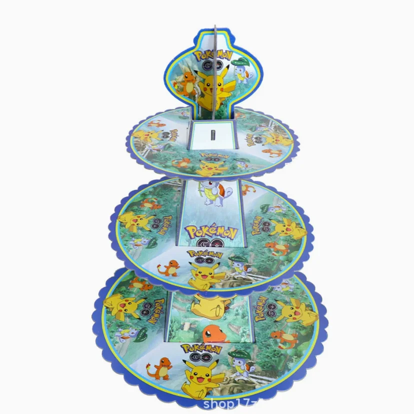 Pikachu Pokemon Three Tier Cake Stand Cute Cartoon Cake Stand Kids Birthday Party Decorations Dessert Tray Party Supplies