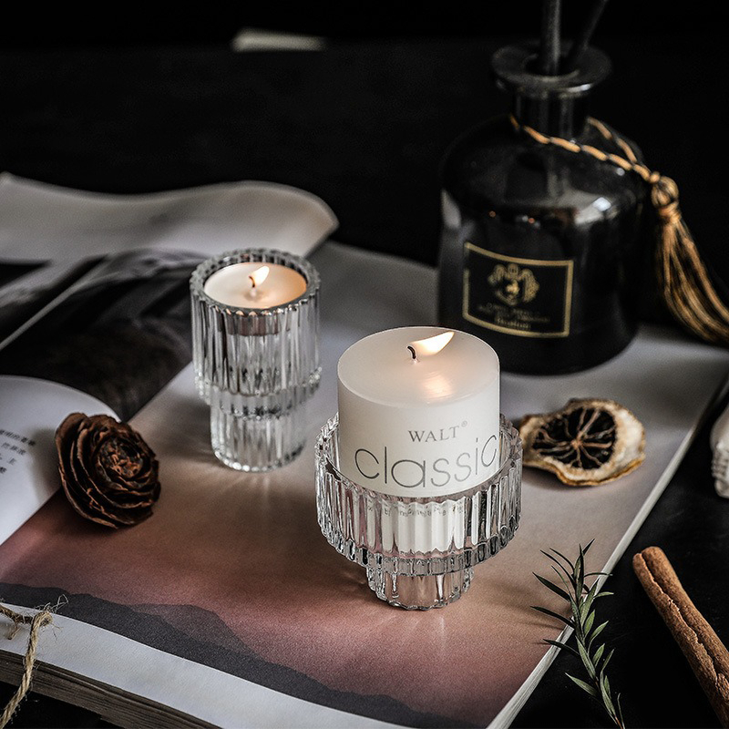 Pillar Tealight Candle Holder Clear Glass for Table Design Candlesticks, Decorative Tabletop Home Dining Centerpiece
