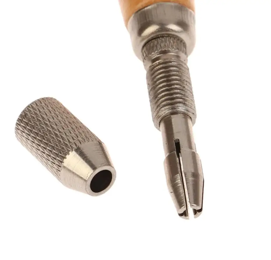 A Quality palm grip small handy vice with comfortable shape handle,This palm vice has two steel collets.
