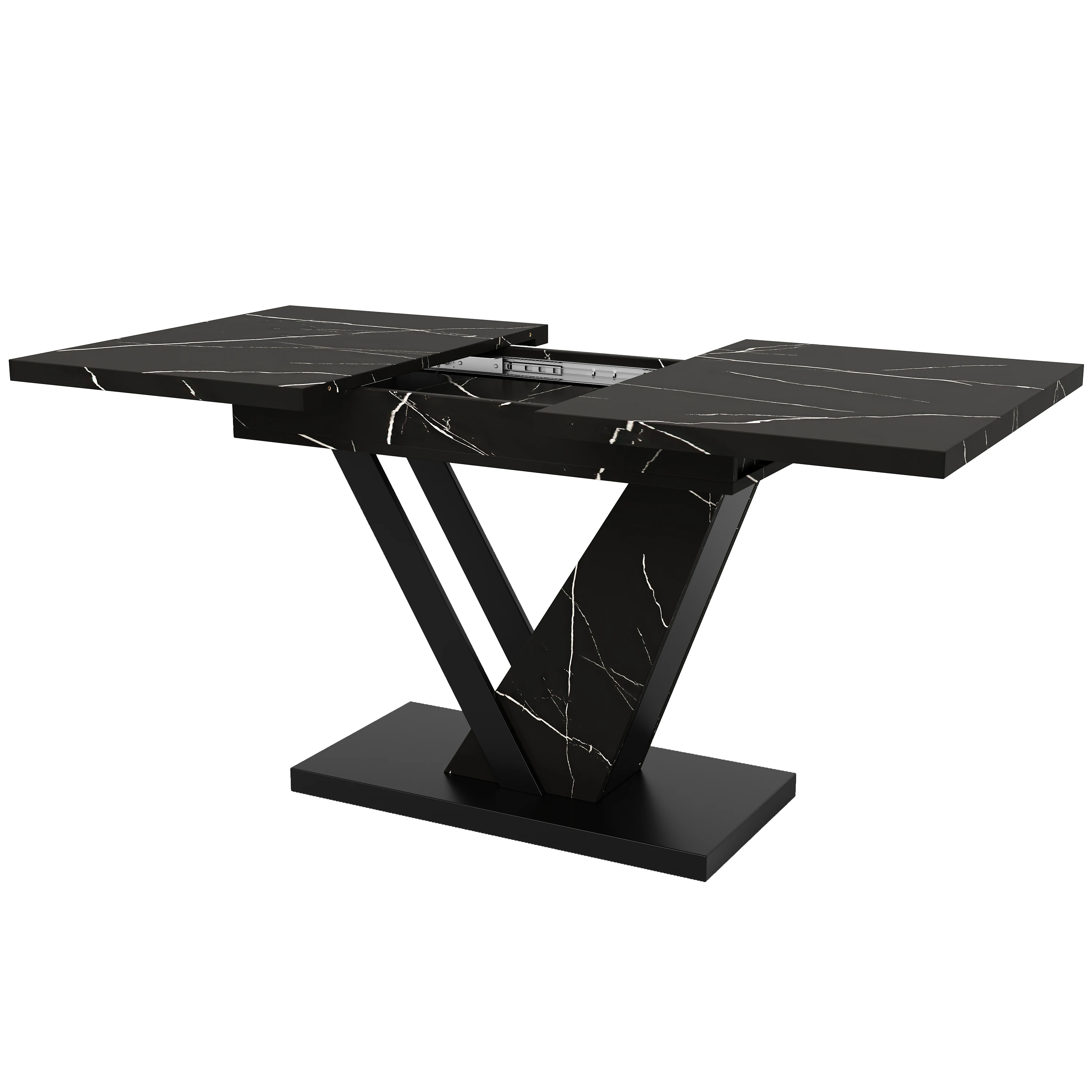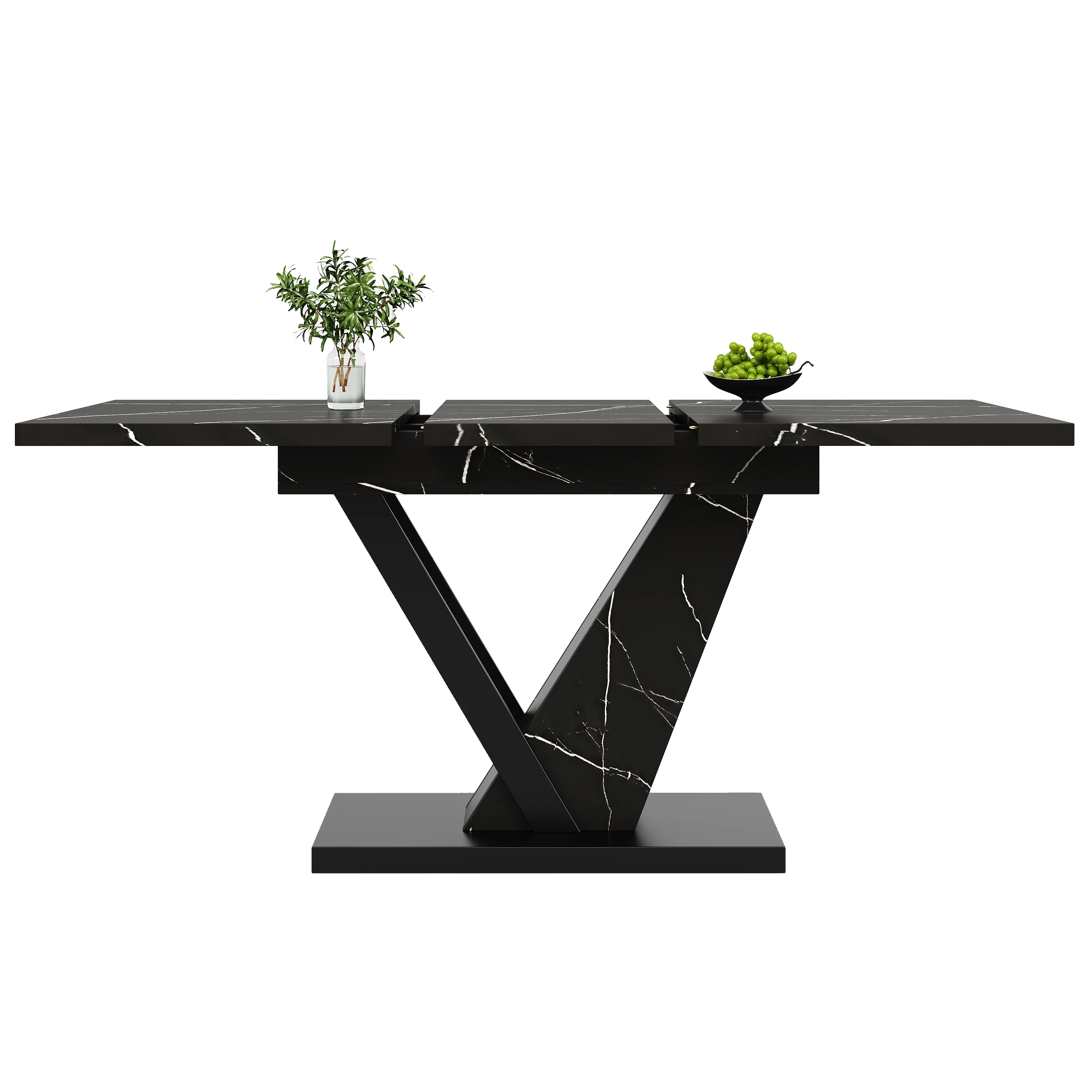 Quality material craftsmanshipThe tabletop is made of high-quality MDF board with marbled veneer, combining durability with elegant design. Thickened MDF board and iron tube combination legs provide excellent stability, and adjustable legs ensure smooth placement on all types of floors.