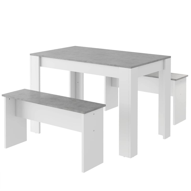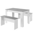 PINGGO Dining Table With 2 Benches Dining Table Set For Kitchen Dining Room Small Space Artificial Marble (Grey and White)