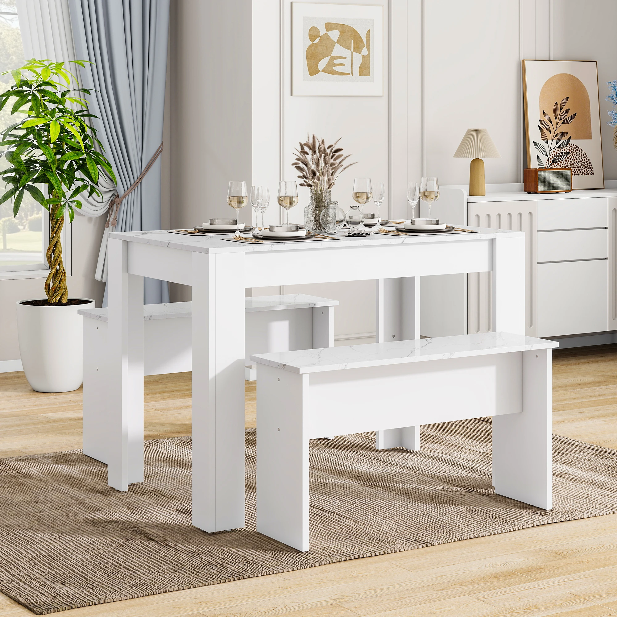 Nice Firmness--You Can Rely on Expertly crafted from premium 1.5cm-thick E1 MDF for superior stability to effortlessly withstand daily use in home. The dining set will become a staple of your home and provide worry-free seating for years to come.