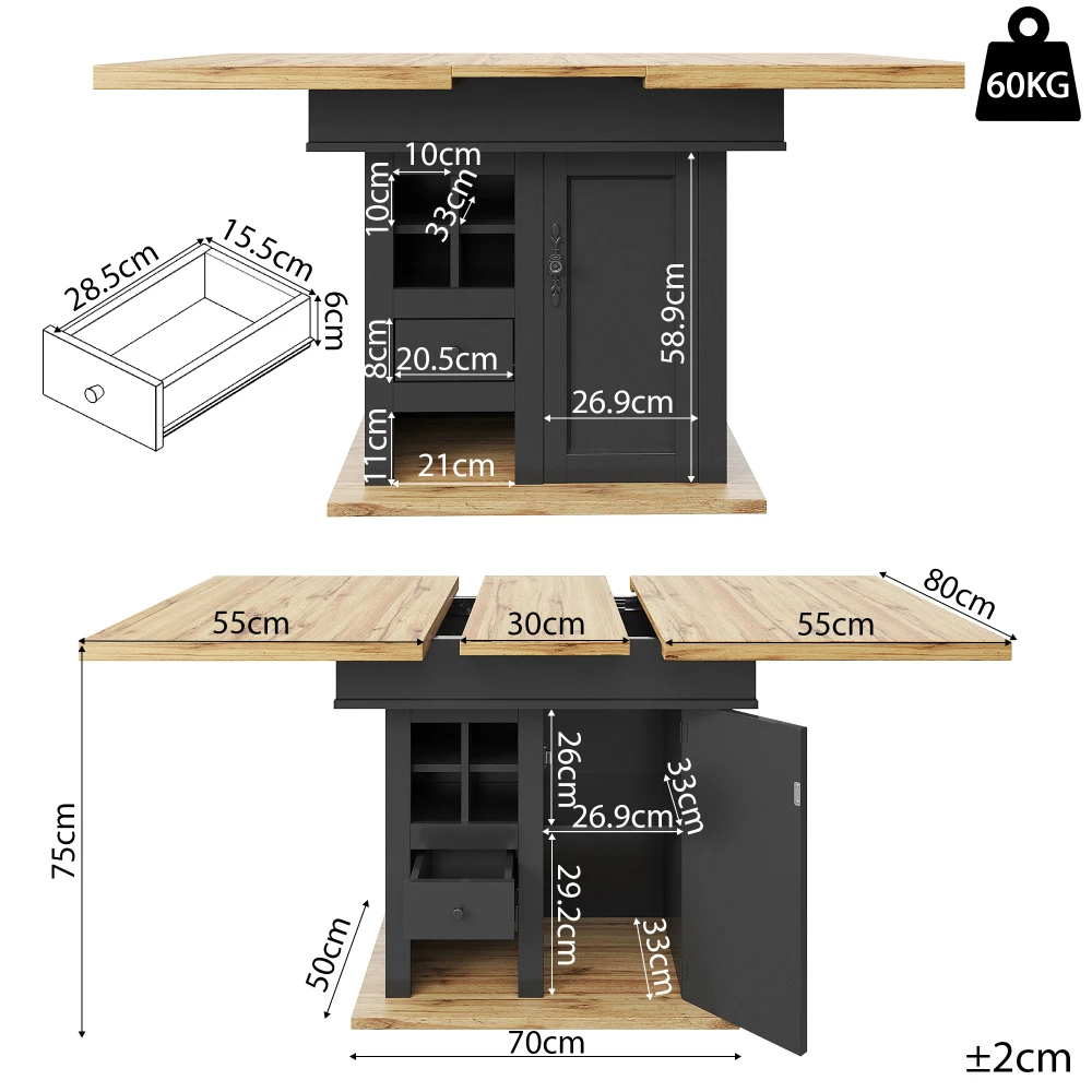 Flexible adjustment: Extendable on both sides with extension plate for variable sizes and uses.