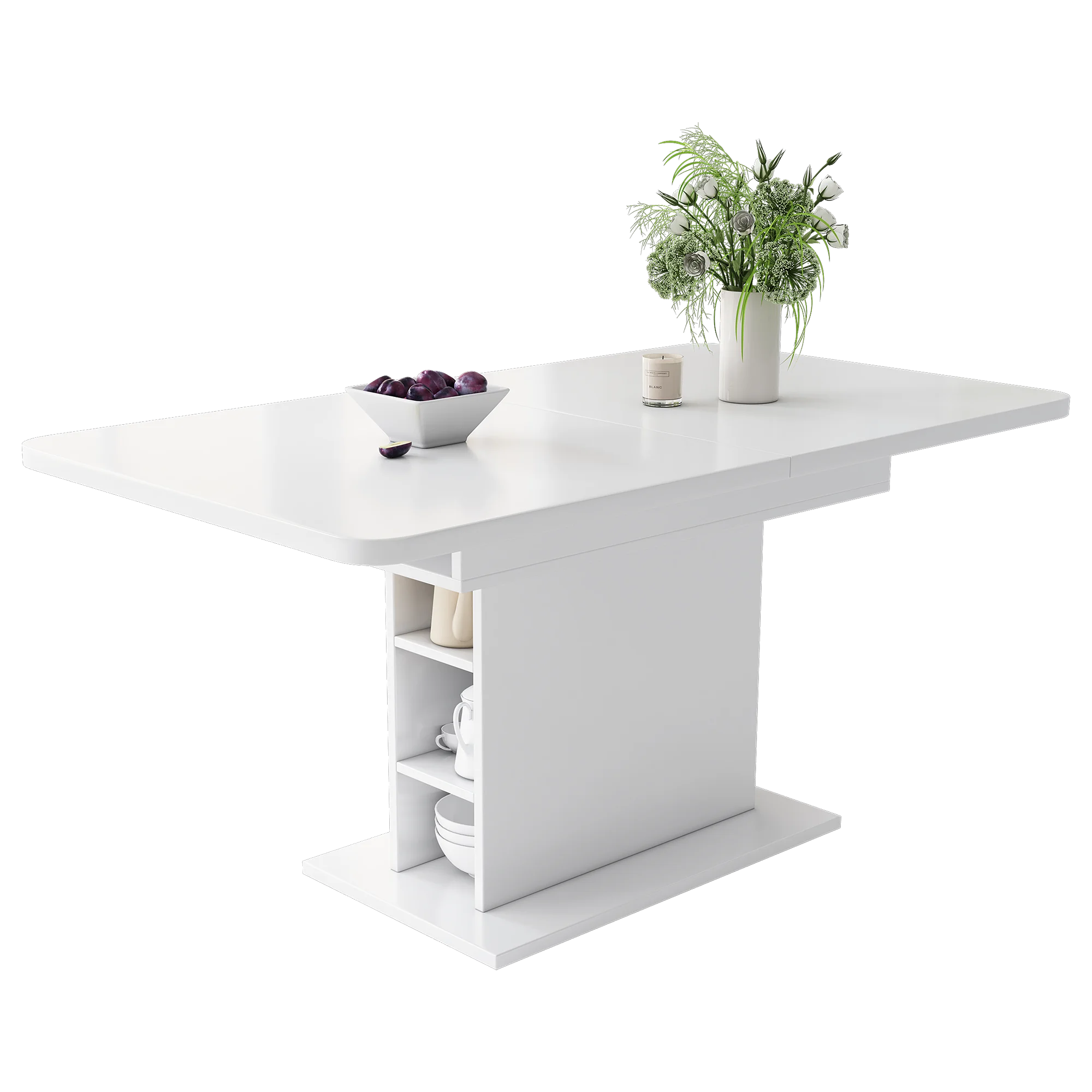 High space utilization: By utilizing the center column and multiple left and right block designs, this dining table maximizes space utilization. Users can intelligently organize and store items, making the entire dining area more tidy and organized.