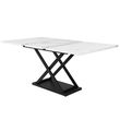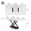 PINGGO Telescopic Dining Table Extendable Dining Table Space-Saving Kitchen Table Black Crossed Iron Legs White Marble Patt