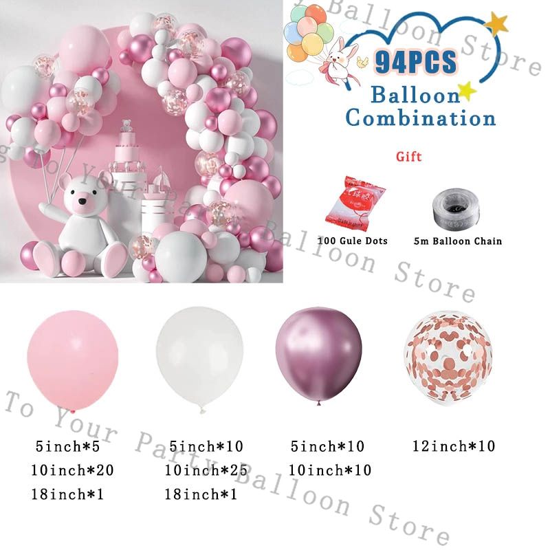 Pink Balloon Garland Kit White Chrome Gold Balloon Arch Baby Shower Birthday Bridal Shower Wedding Party Decoration Latex Globos