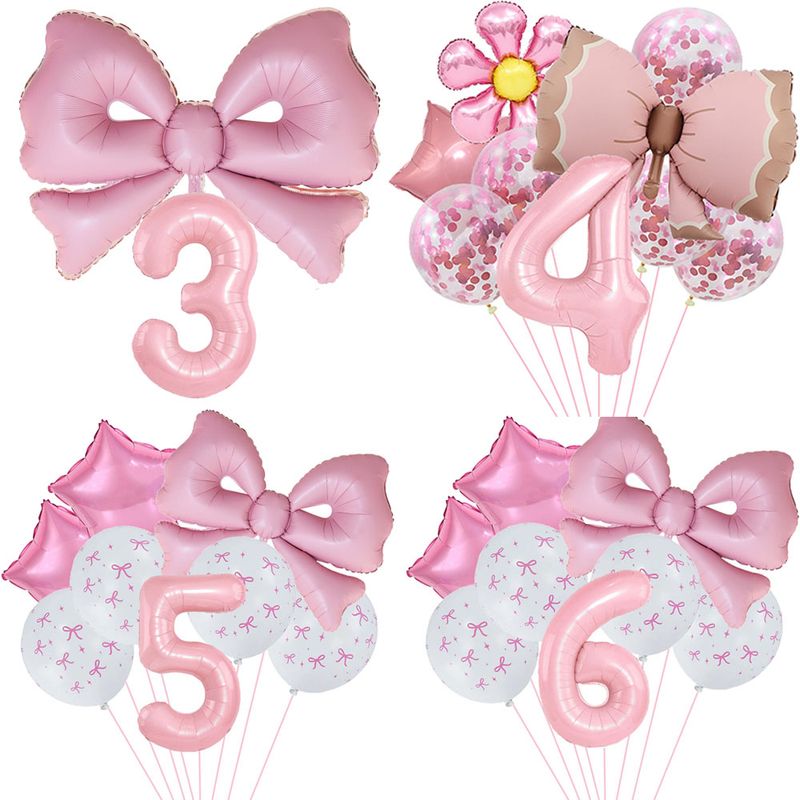 Pink Bow Balloons Kits Girls Birthday Pink Bownot Balloon With Pink 32'' Number Balloon Coquette Birthday Wedding Party Decors