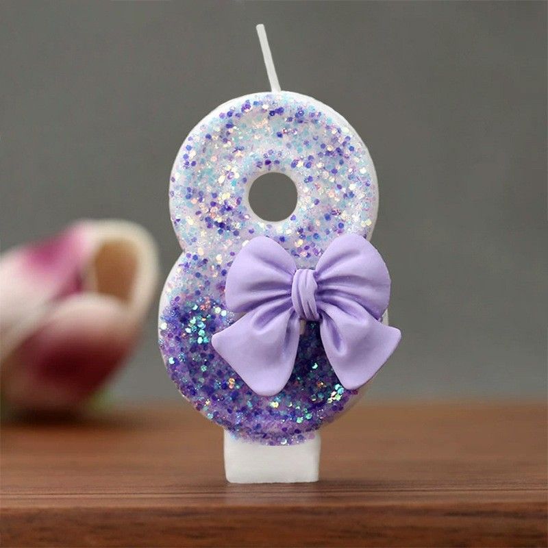 Pink Bow Birthday Candles 0-9 Number Birthday Cake Decoration Celebration Anniversary Party Candles Bow Creative Digital Candle