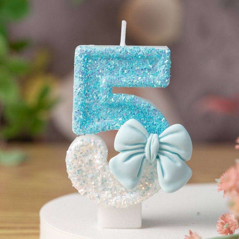 Pink Bow Birthday Candles 0-9 Number Birthday Cake Decoration Celebration Anniversary Party Candles Bow Creative Digital Candle