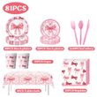 Pink Bow Birthday Decoration Tableware Plates Cups Napkin Tablecloth for Kids Girls Bow Themed Party Backdrop Banner Balloon Set
