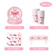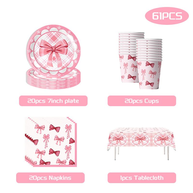 Pink Bow Birthday Decoration Tableware Plates Cups Napkin Tablecloth for Kids Girls Bow Themed Party Backdrop Banner Balloon Set