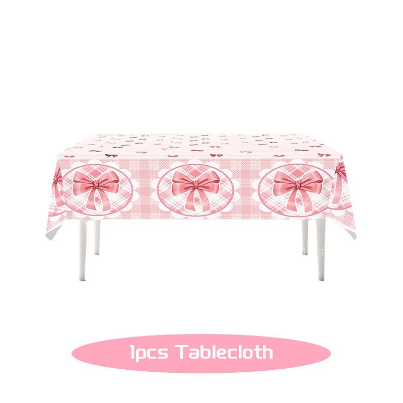 Pink Bow Birthday Decoration Tableware Plates Cups Napkin Tablecloth for Kids Girls Bow Themed Party Backdrop Banner Balloon Set