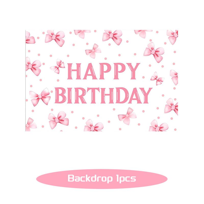 Pink Bow Birthday Decoration Tableware Plates Cups Napkin Tablecloth for Kids Girls Bow Themed Party Backdrop Banner Balloon Set