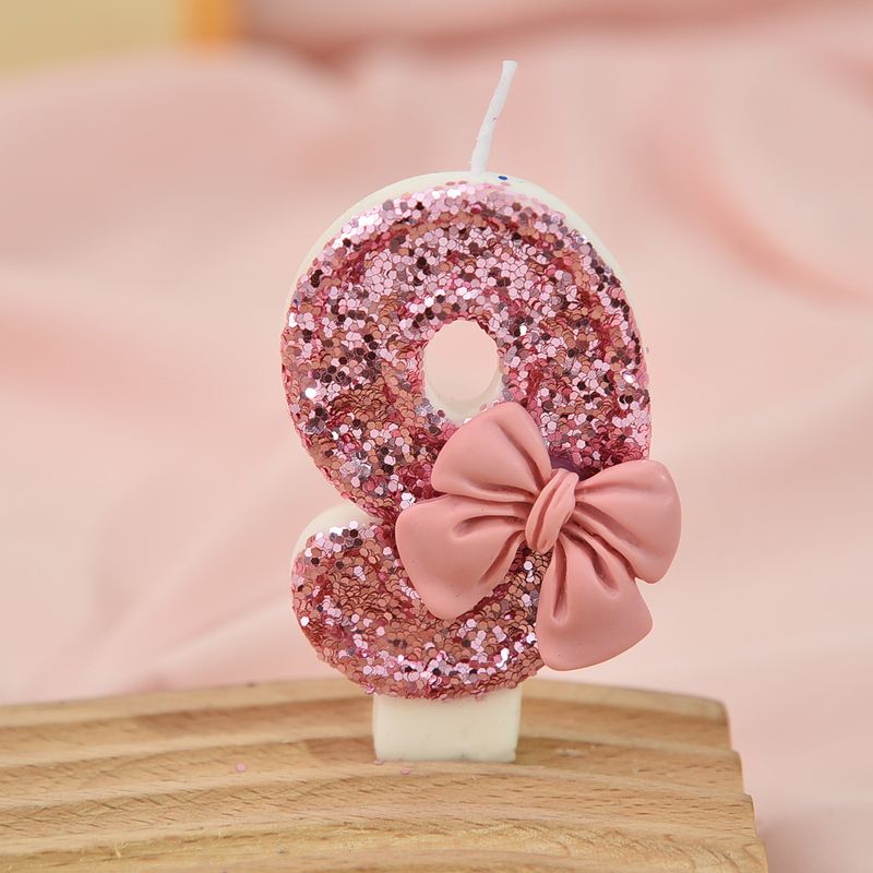 Pink bow color matching candle creative sequin anniversary digital birthday cake candle decoration