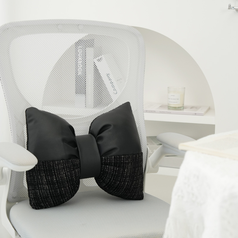 Pink bow ribbon couch pillow imitation rabbit fur comfortable car seat cushion ins style simple all-match back cushion