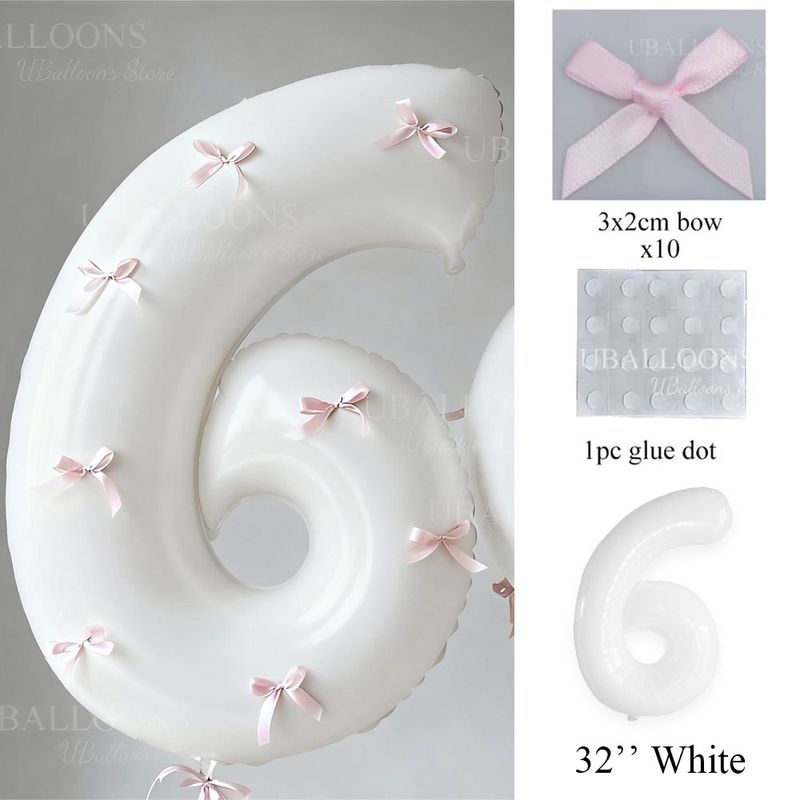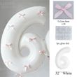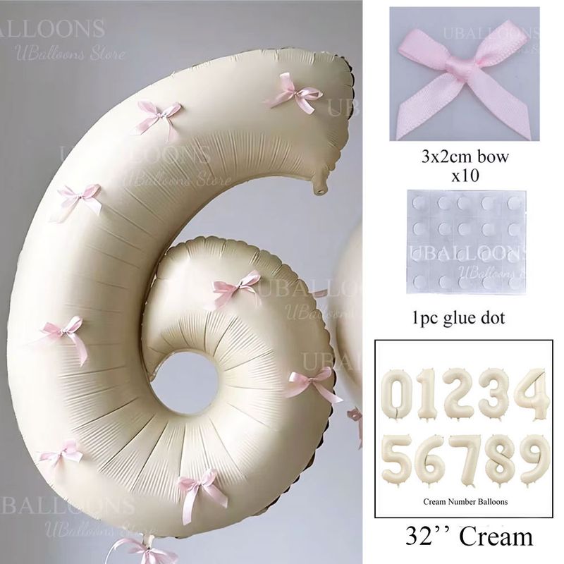 Pink Bows Number Foil Balloons 32Inch Cream Beige Number Digit Balloons with Pink Bows for Birthday Coquette Themed Party Decor