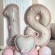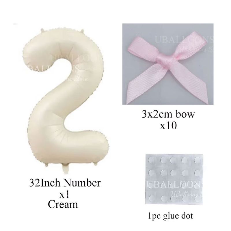 Pink Bows Number Foil Balloons 32Inch Cream Beige Number Digit Balloons with Pink Bows for Birthday Coquette Themed Party Decor
