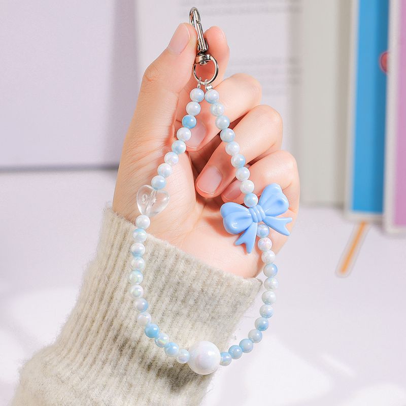 Pink Butterfly Pearl Bow Phone Chain Anti-Lost Bracelet For Mobile Phone Case Wrist Strap Lanyard Phone Keychain Portable Chain