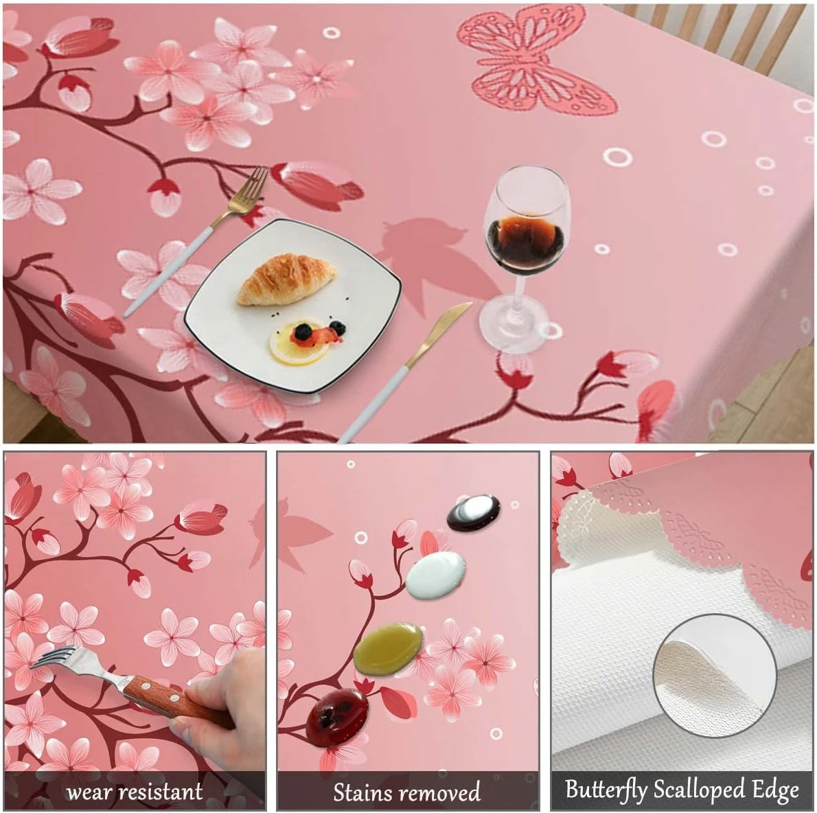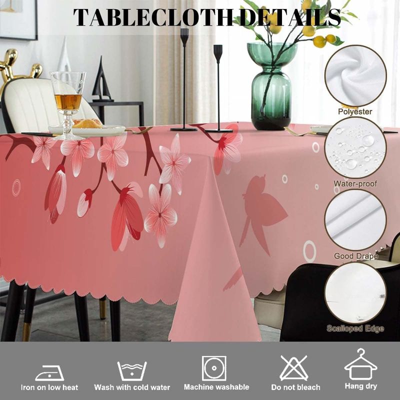Pink Cherry Blossom Rectangle Waterproof Tablecloth Holiday Party Decor Washable Kitchen Dining Tablecloth Wedding Decorations