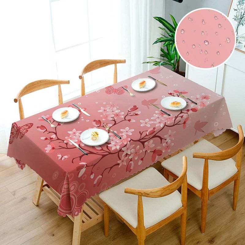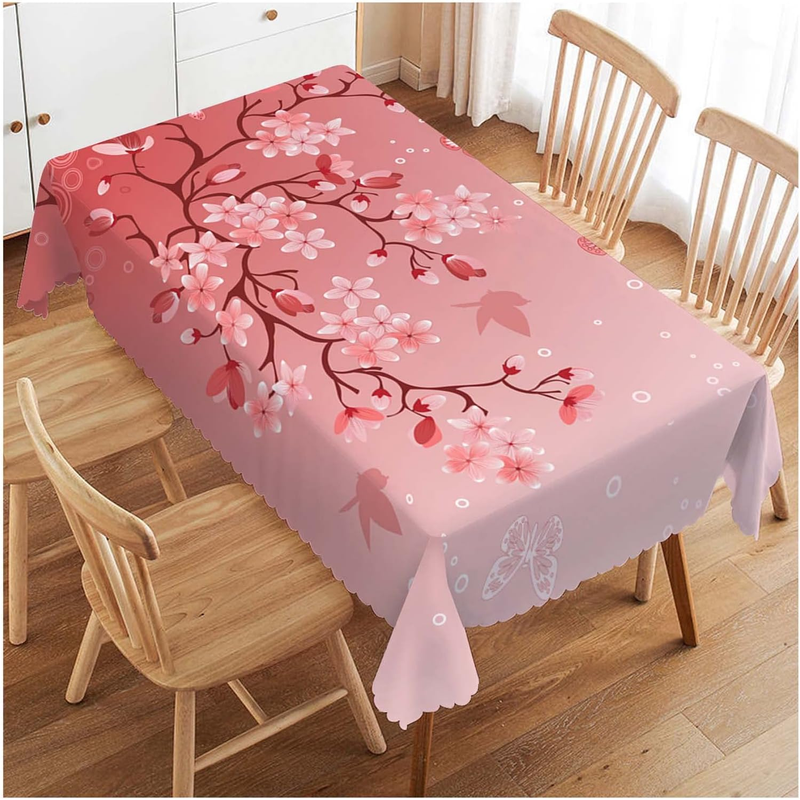 Pink Cherry Blossom Rectangle Waterproof Tablecloth Holiday Party Decor Washable Kitchen Dining Tablecloth Wedding Decorations