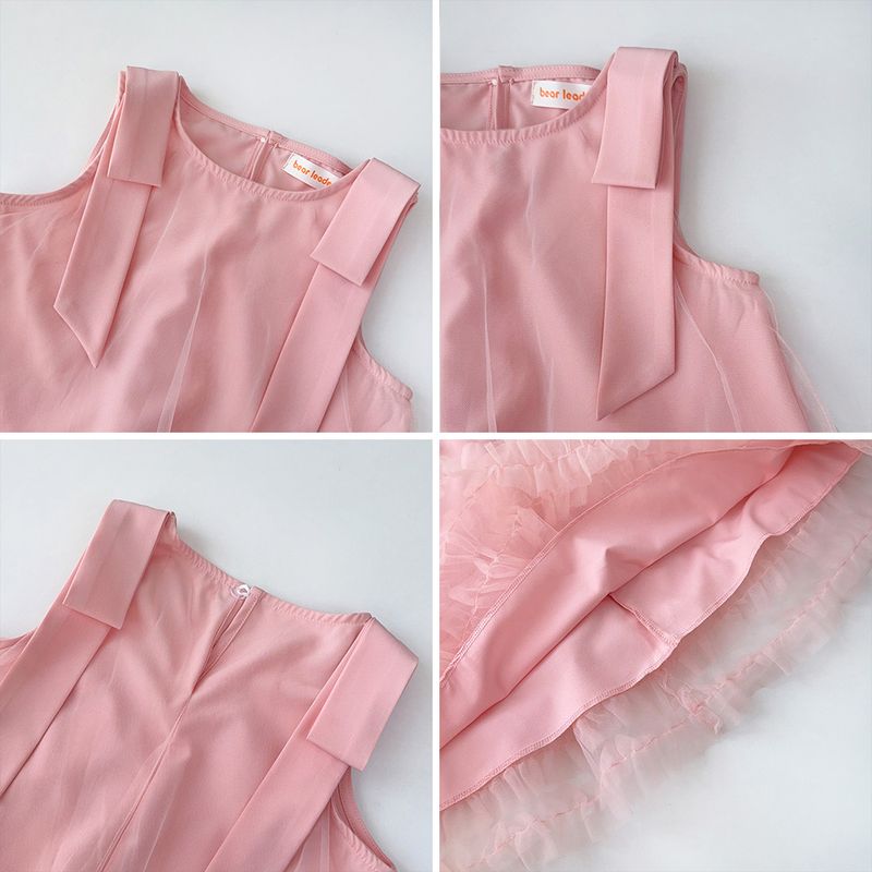 Pink Dreamy Sweet Girl Fairy Princess Dress Sleeveless Bow Decoration Mesh Lace Children's Casual Clothes Birthday Party Summer