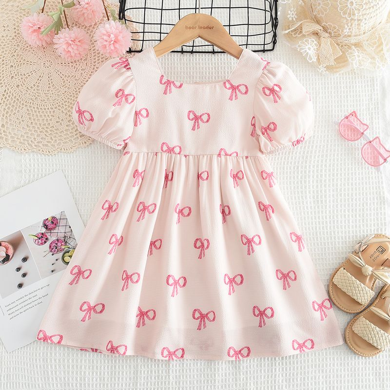 Pink Dreamy Sweet Girl Fairy Princess Dress Sleeveless Bow Decoration Mesh Lace Children's Casual Clothes Birthday Party Summer
