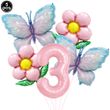 5pcs Pink Number Balloon Butterfly Balloon Set Butterfly Balloons Foil 32inch 1st-9th Number Birthday Decor for Girl Baby Shower