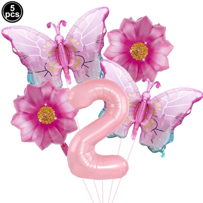 5pcs Pink Number Balloon Butterfly Balloon Set Butterfly Balloons Foil 32inch 1st-9th Number Birthday Decor for Girl Baby Shower