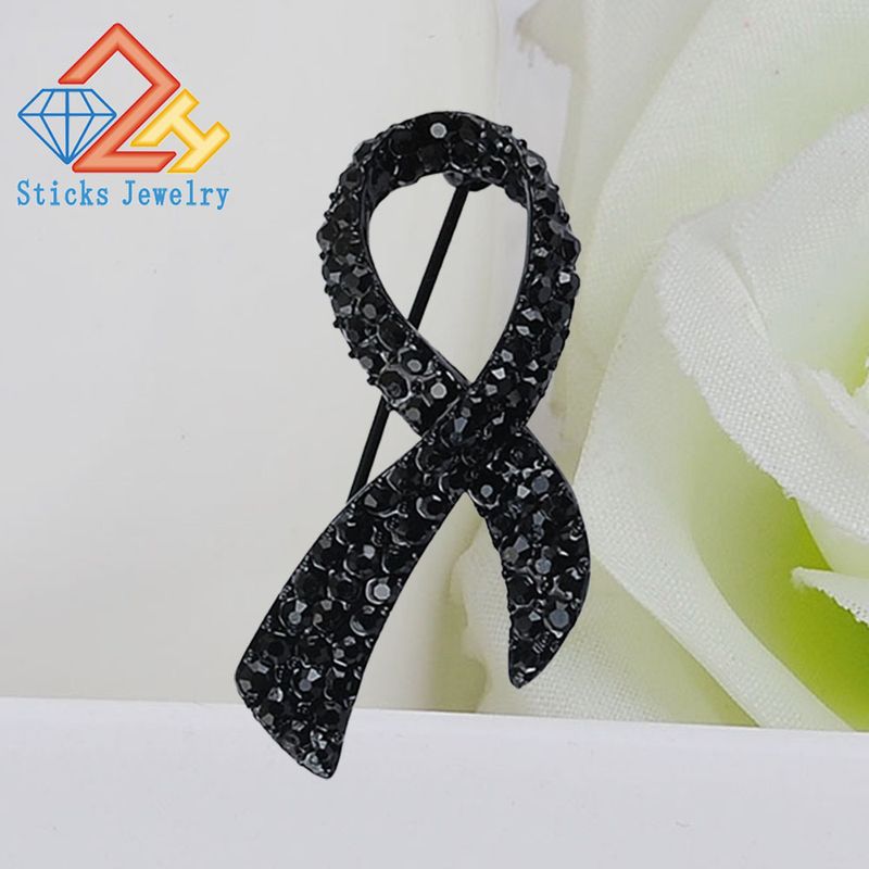 This pink ribbon brooch features a classic design with cubic zirconia, making it a fashionable accessory for any outfit.